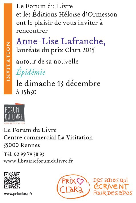 Anne-Lise, élève de Première L, lauréate du prix Clara 2015
