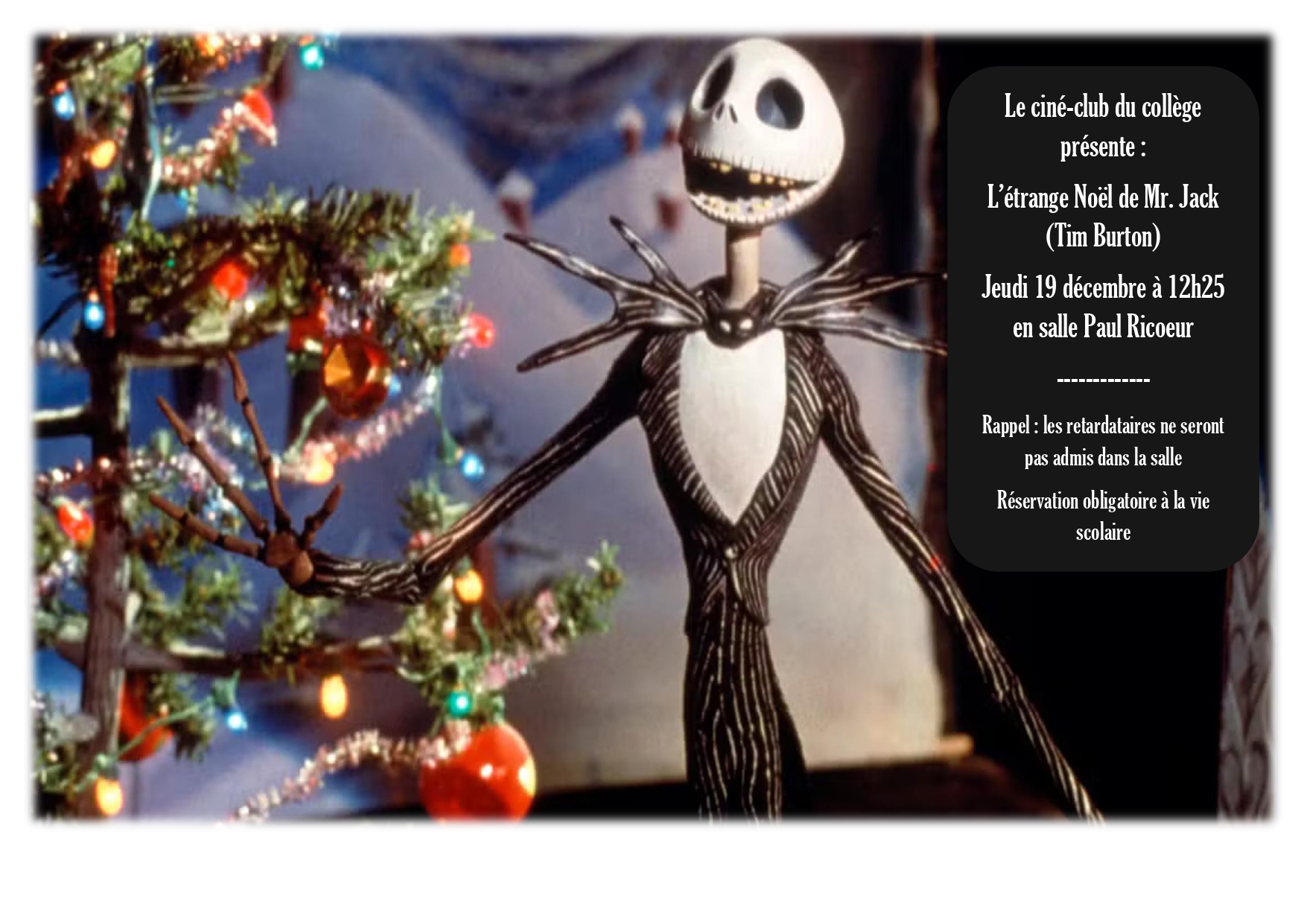 | Mr Jack affiche | 806.8 kio | CINE-CLUB COLLEGE : « L’étrange Noël de Mr Jack » de Tim Burton (1994) |